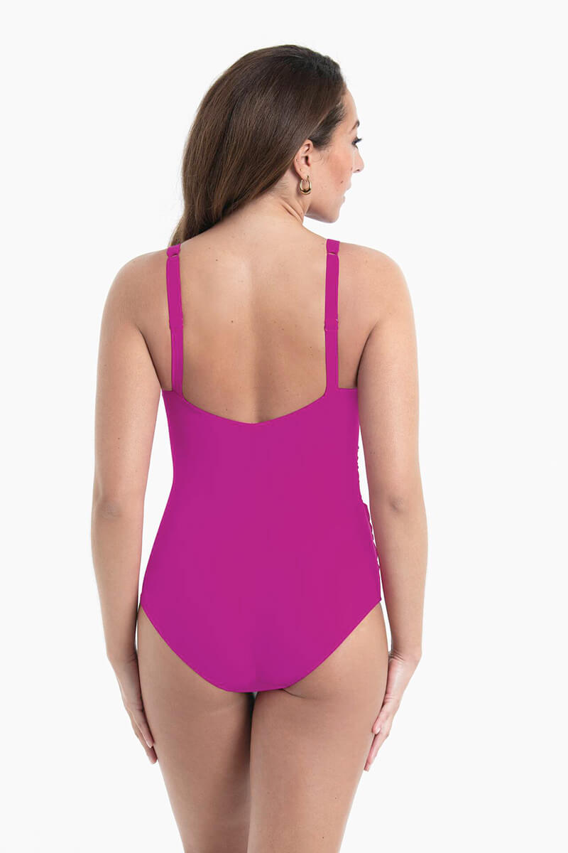 Het Anita Badpak Aileen Nautical Charm is uitgevoerd in fuchsia roze. Dit klassieke badpak met beugel heeft een afslankend effect door de sierlijke plooitjes van fijne tule aan de voorkant. Het badpak sluit mooi aan en geeft een vrouwelijke uitstraling. Dankzij de verstevigde schouderbandjes en gevoerde rug biedt het ook in grotere maten goede ondersteuning en draagcomfort.