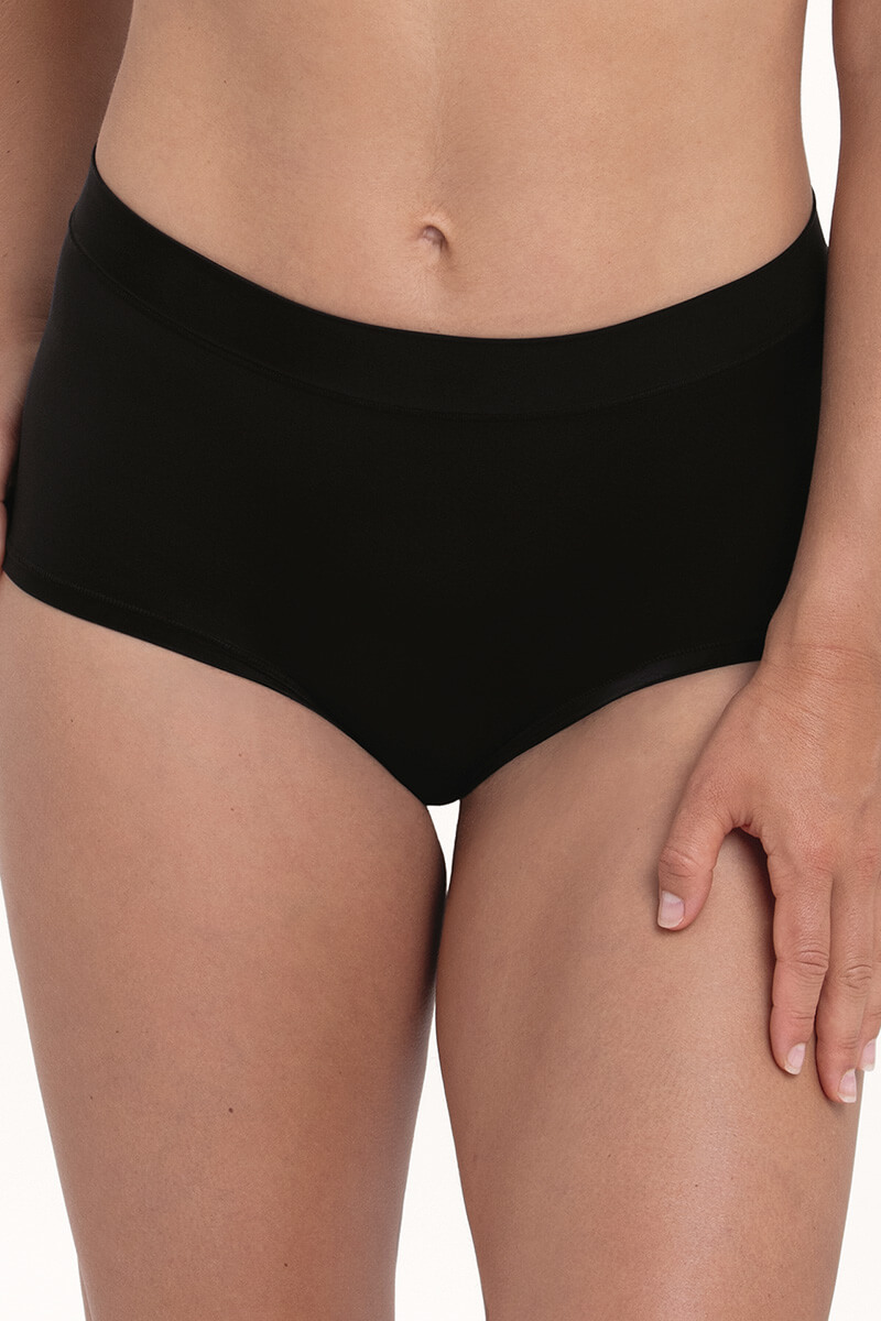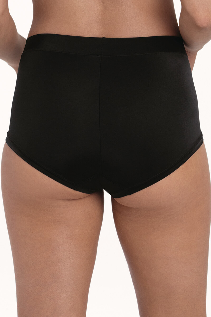 De Anita Claire Hoge tailleslip Zwart is uitgevoerd in elegant zwart. De slip is gemaakt van een zachte, elastische stof die perfect aansluit en heerlijk comfortabel aanvoelt. De afwerkingen aan taille en benen zijn extra zacht voor een gladde pasvorm onder kleding. De subtiele glans en stijlvolle contrastband geven de slip een chique uitstraling perfect te combineren met de spacer-BH uit de Claire-serie.
