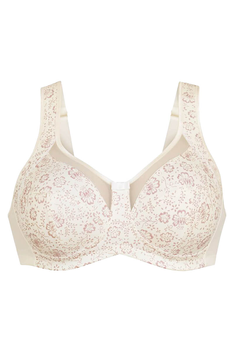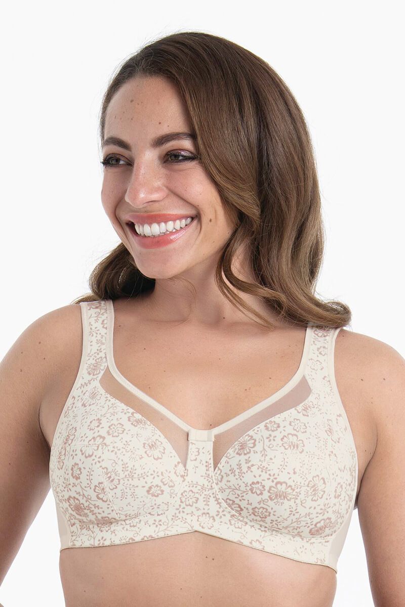 De Comfort BH Anita Clara Art Crystal 5873 is uitgevoerd in een zachte, ivoor kleur met een subtiele bloemenprint. De driedelige cups met verstevigde zijpanden zorgen voor een mooie, natuurlijke vorm en stevig houvast. De halftransparante bies aan het decolleté geeft de BH een lichte, elegante uitstraling. Brede, zacht gevoerde schouderbandjes en een comfortabele rug bieden extra steun en draaggemak, ook in de grotere maten.