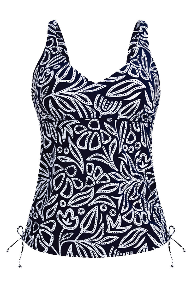 De geïntegreerde beugel zorgt voor vorm en stevige ondersteuning zonder te knellen. De voering van de cup zorgt voor extra comfortabele ondersteuning, waardoor je met vertrouwen kunt genieten van je dag aan het water. De verstelbare touwtjes aan de zijkant geeft je de vrijheid om de tankini aan te passen aan jouw persoonlijke voorkeur.