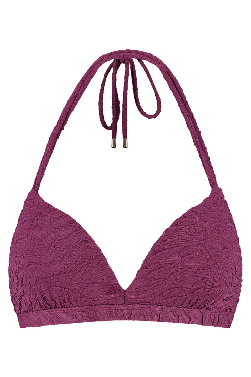 De Beachlife Halter bikini top Bright Plum is uitgevoerd in een prachtige paarse kleur met een subtiele structuur in de stof. Een bestseller vanwege zijn sexy en comfortabele pasvorm. De top is gewatteerd en voorzien van een beugel. Dit model geeft een subtiel push-up effect dankzij de halterbandjes en de vorm van de foampads.