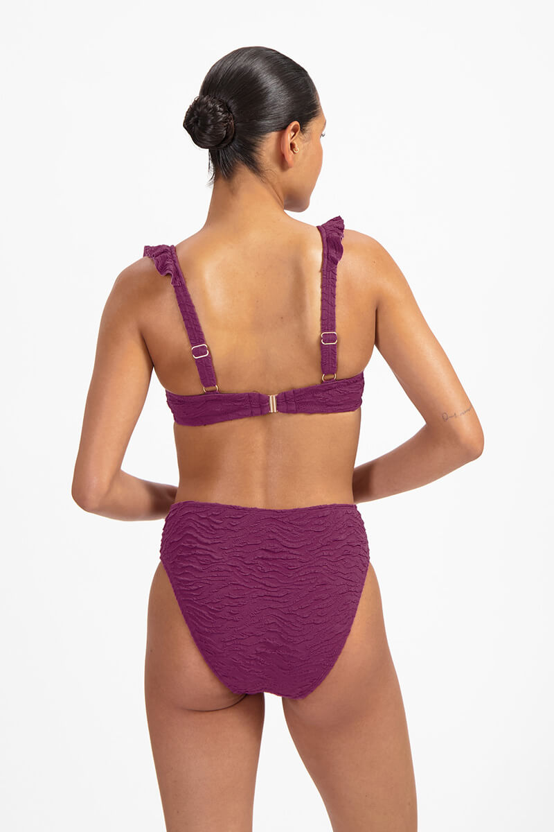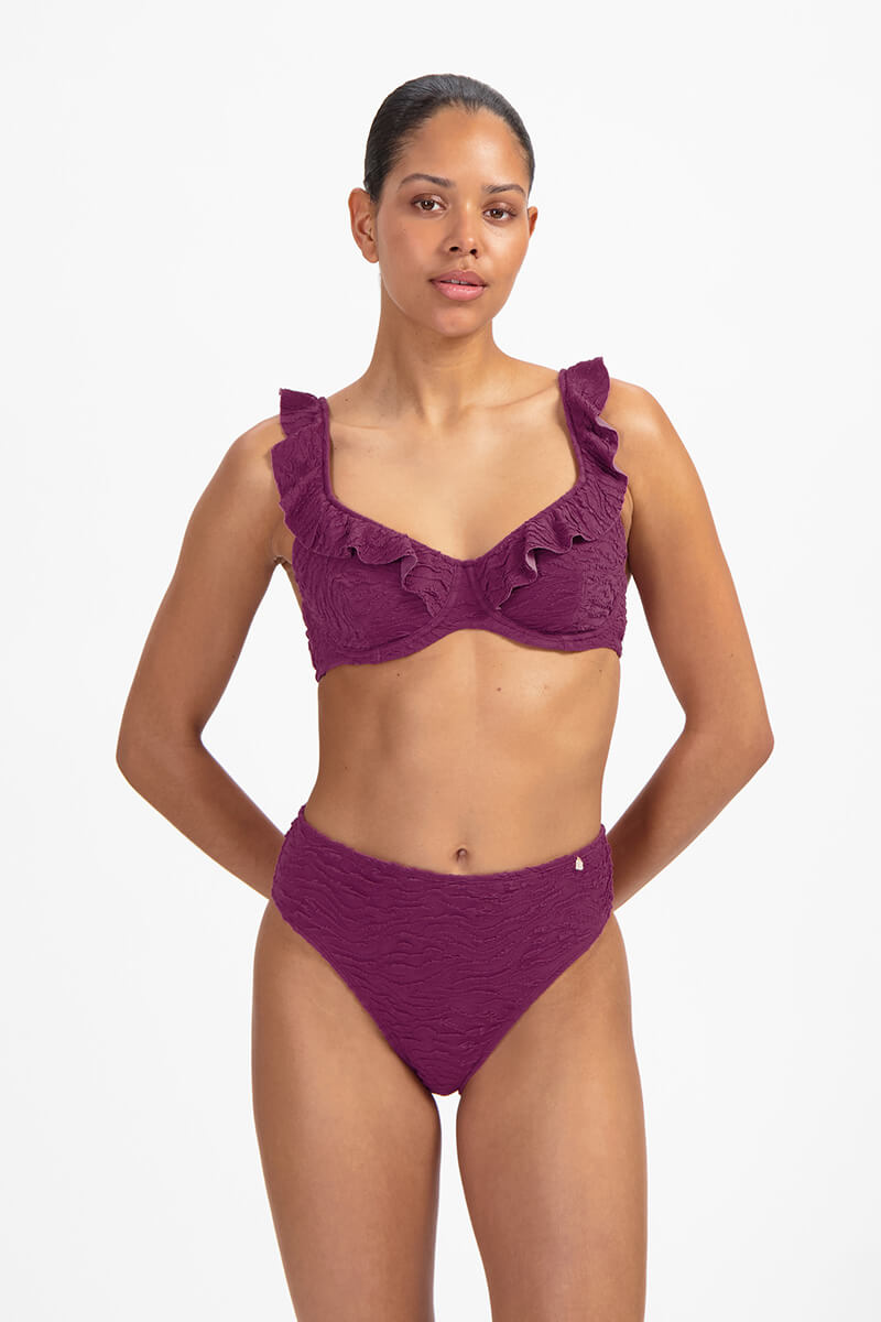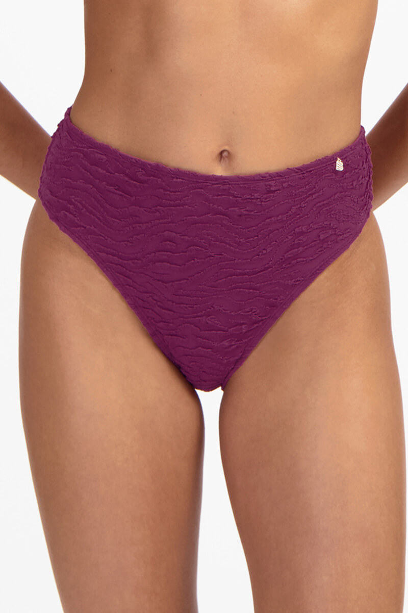 De Beachlife High Waist Bikinislip Bright Plum is uitgevoerd in een prachtige paarse kleur met een subtiele structuur in de stof. De slip heeft een hoge taille en is iets hoger uitgesneden bij de benen voor een flatterende look.