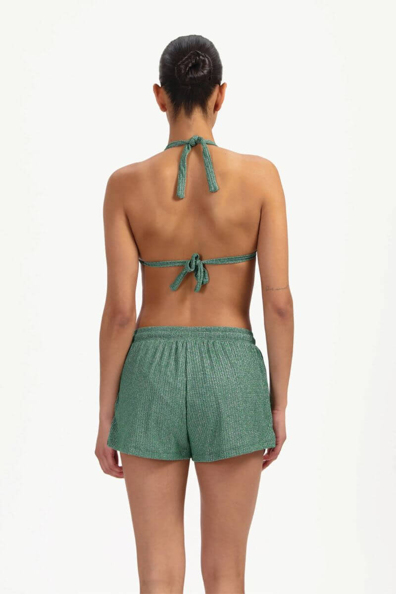 De Beachlife Short Green Glitter is uitgevoerd in een donkergroene glitterstof met een subtiele glans en een fijne ribstructuur. Het shortje heeft een losvallende pasvorm en is te combineren met je Beachlife bikini of badpak om je look compleet te maken.