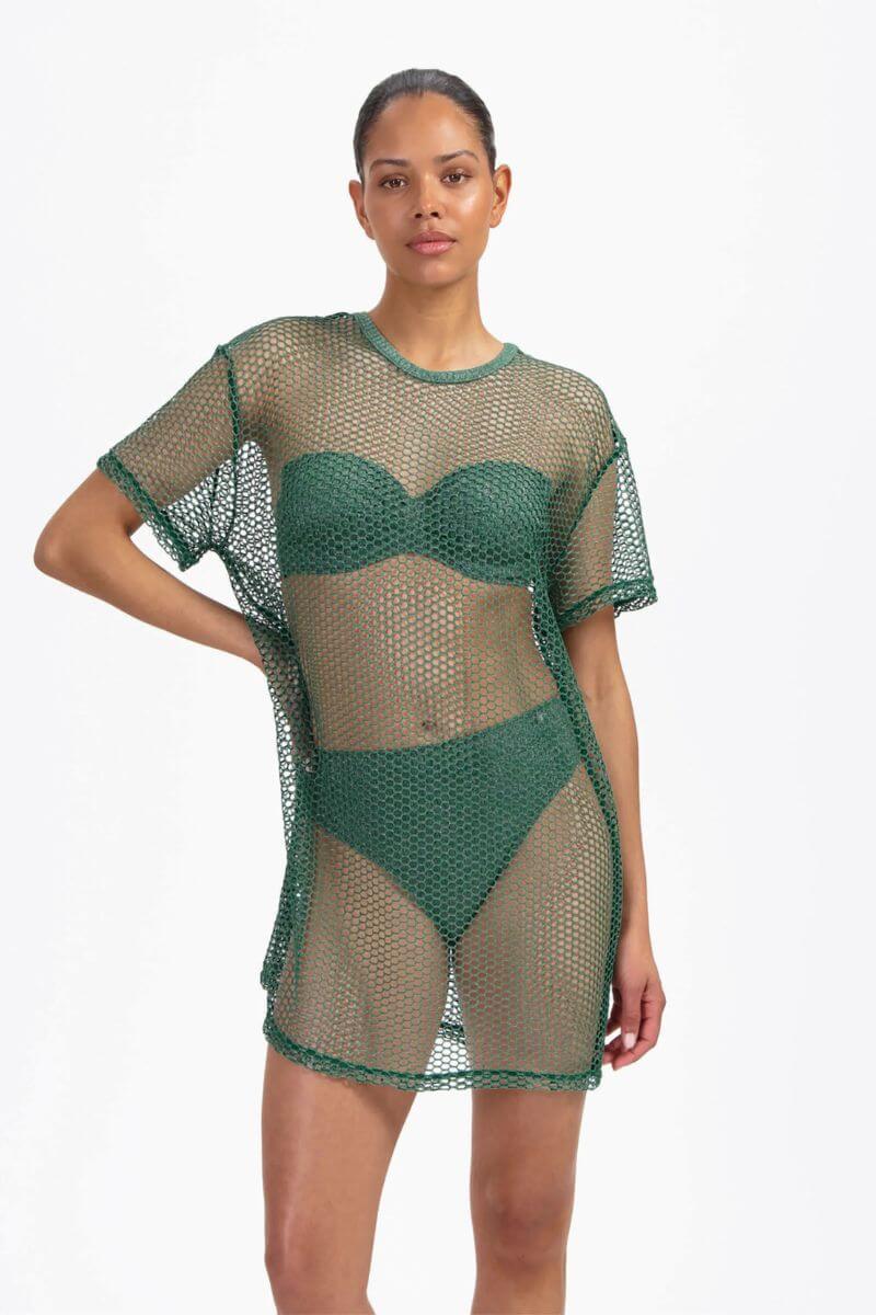 De Beachlife Strandjurk Green Glitter is uitgevoerd in een donkergroene glitterstof met een subtiele glans. De jurk is een wijd, luchtig model waardoor hij comfortabel over je bikini valt en perfect is voor een dag op het strand. De lichte, transparante netstof geeft de strandjurk een speelse uitstraling.