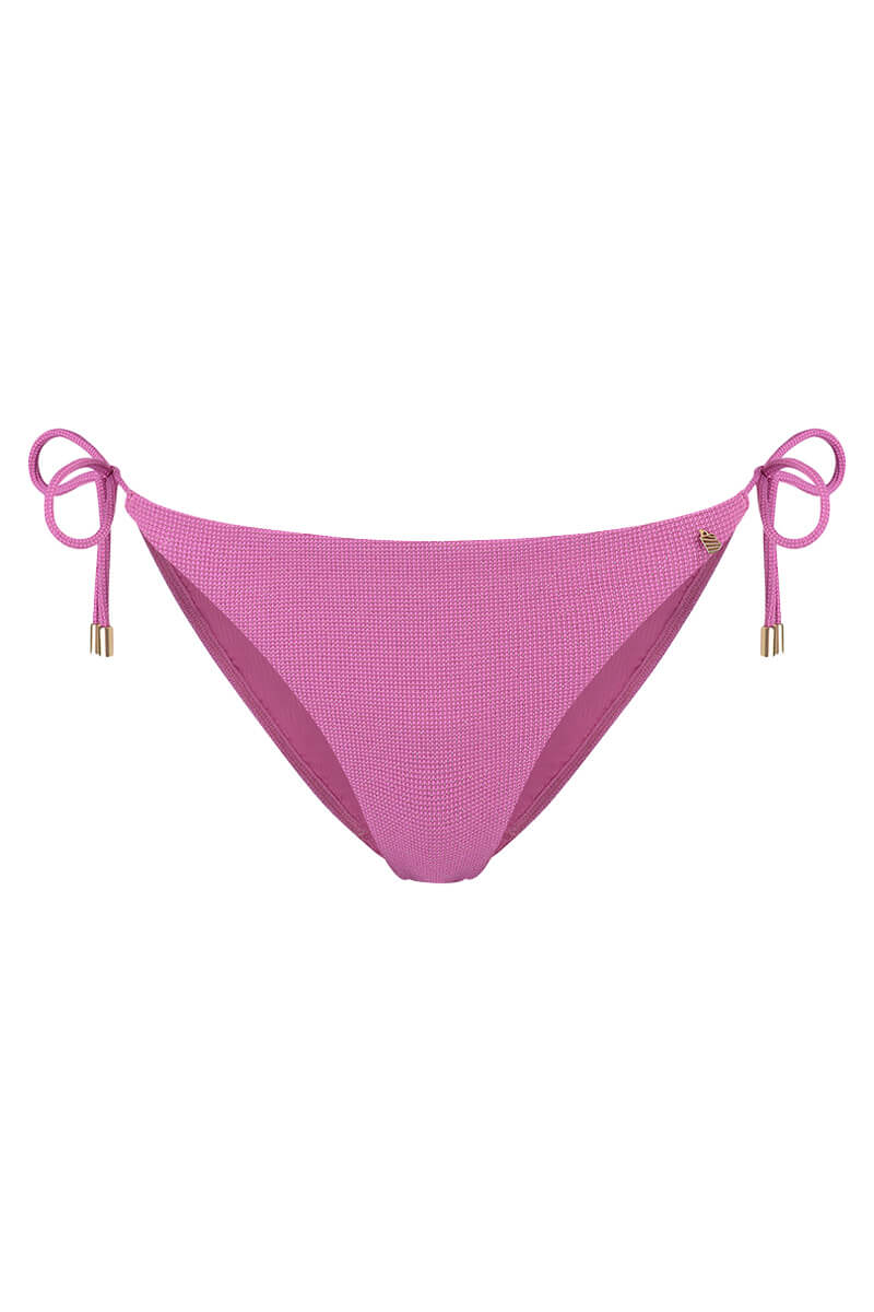 De Beachlife Strikslip Pink Shimmer is uitgevoerd in een mooie roze trendkleur gecombineerd met een subtiele sparkling, dankzij het lurex draad. Met de koordjes aan de zijkant strik je je bikinislip zoals jij het fijn vindt.