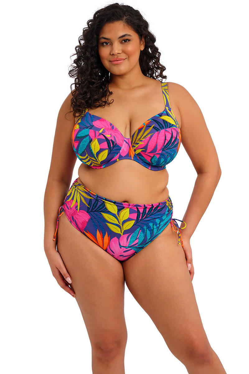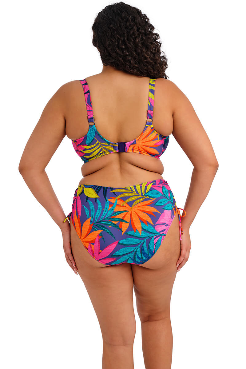 De Elomi Porto Rafti Rijgslip Indigo is uitgevoerd in een diepe indigoblauwe kleur met een levendige tropische print in fuchsia, oranje en groentinten. Met de handige touwtjes aan de zijkanten kun je zelf kun bepalen hoe hoog hij valt. De slip zit comfortabel, sluit mooi aan en geeft je een fijne, zelfverzekerde pasvorm. Perfect om te mixen en matchen met je favoriete bikini-top.