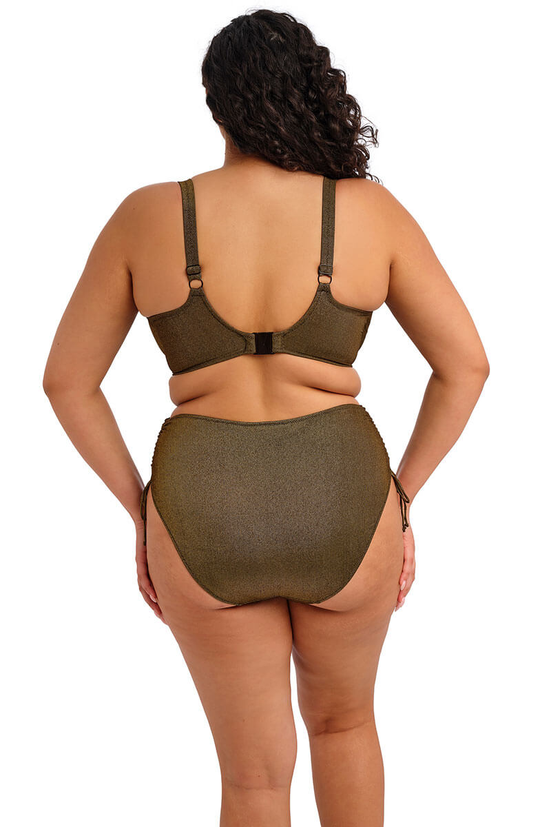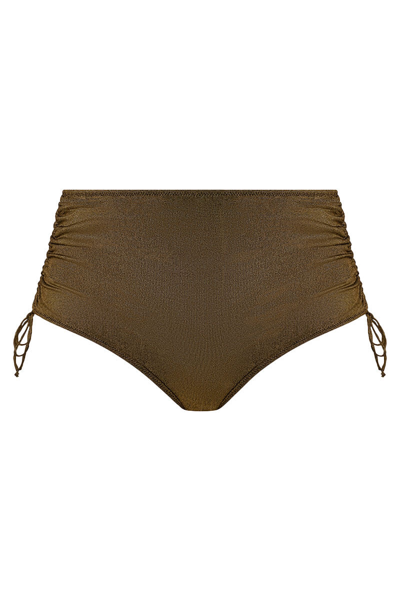 De Elomi Sunset Shimmer Rijgslip Gold Rush is uitgevoerd in een goudkleurige, zacht metallic tint met een subtiele shimmer. Met de handige touwtjes aan de zijkanten kun je zelf kun bepalen hoe hoog hij valt. De slip zit comfortabel, sluit mooi aan en geeft je een fijne, zelfverzekerde pasvorm. Perfect om te mixen en matchen met je favoriete bikini-top.