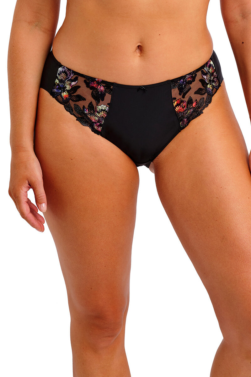 De Fantasie Magdalena Slip Noir is uitgevoerd in zwart met mooi borduursel in warme kleuren en een vleugje glans. De voorkant is gevoerd zodat hij niet doorschijnt, en de zachte stof aan de achterkant voelt licht aan en tekent niet onder je kleding. Een klein strikje voorop maakt de slip helemaal af.