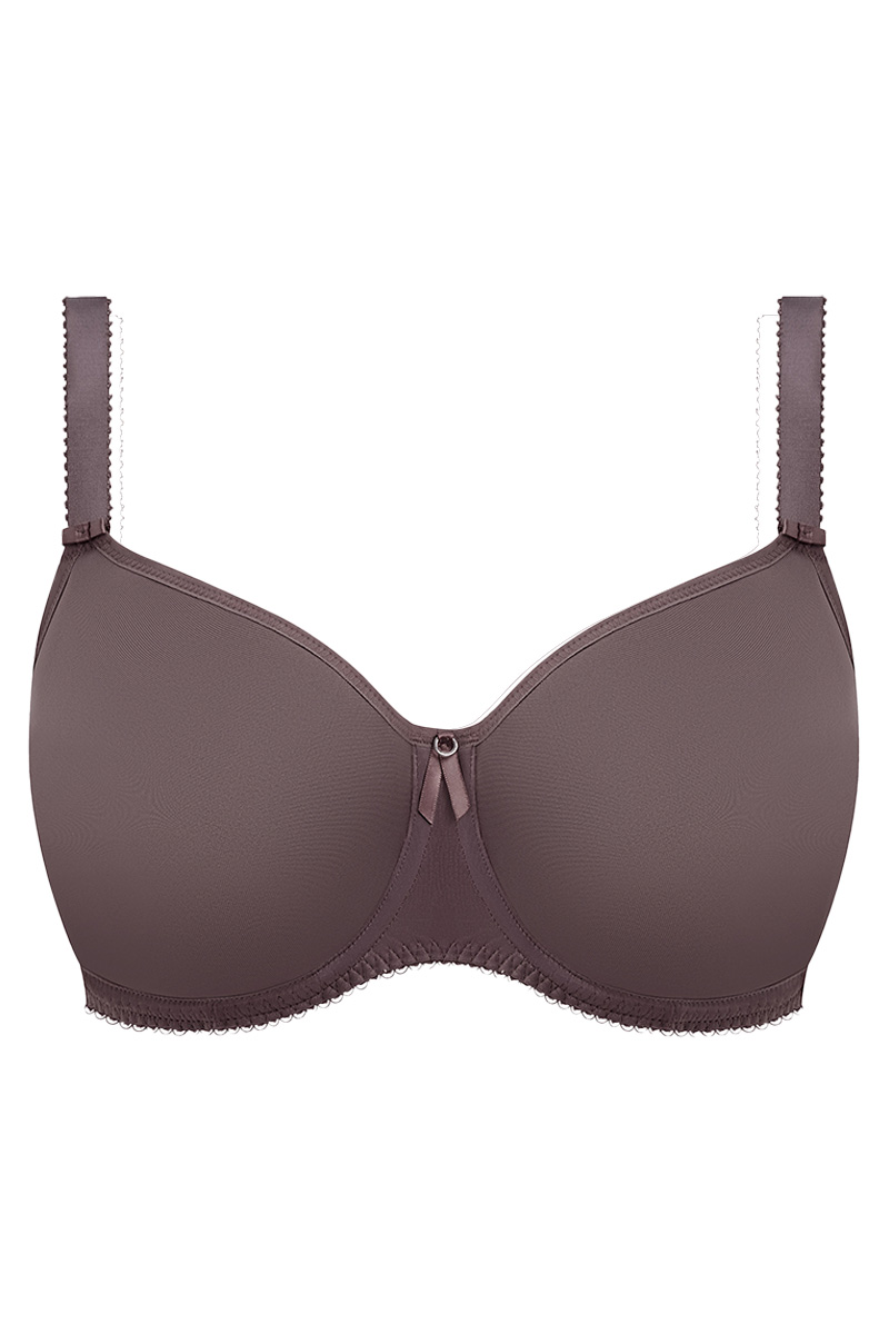 De Fantasie Rebecca Essentials Voorgevormde t-shirt BH Warm Ombre van Fantasie is uitgevoerd in een warme taupe kleur. De BH is gemaakt van spacer, een dubbele laag stof met daartussen een luchtlaag. Hierdoor zijn de cups bijna gewichtloos, ademend en mooi glad.
