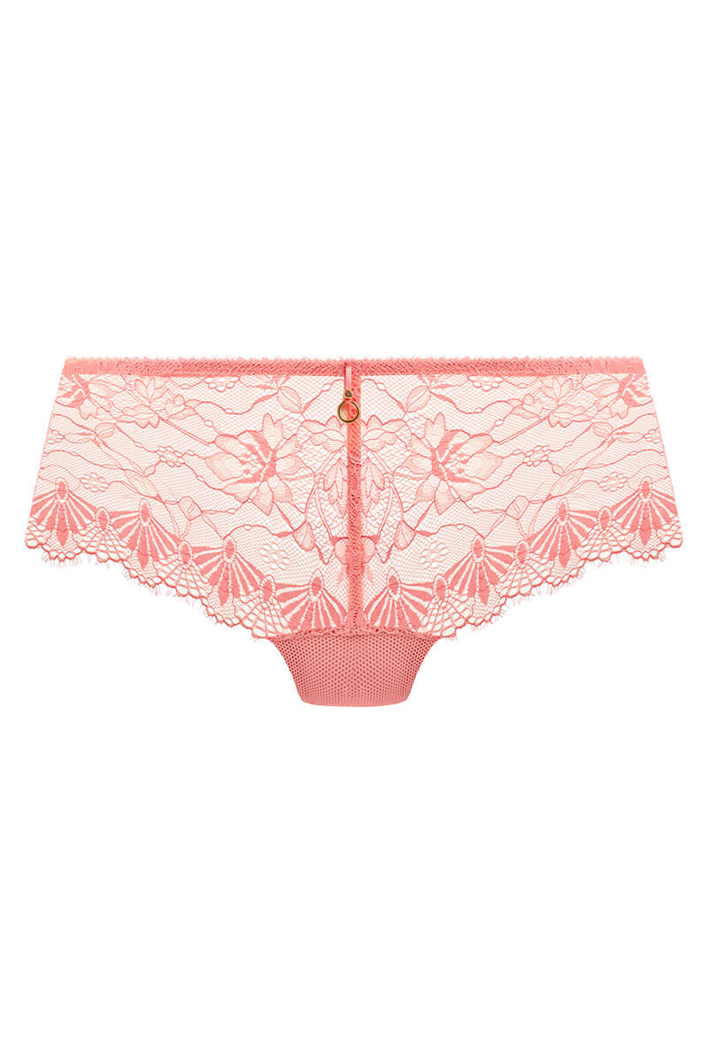 De Freya Fascinate Short Peach is uitgevoerd in de trendy pastelkleur perzik. Het prachtig ontworpen bloemenkant met decoratieve wimpereinden zorgt voor een perfecte stijl. Extra leuk detail is het gouden ringdetail aan de voorkant. Het kruisje is van katoen.