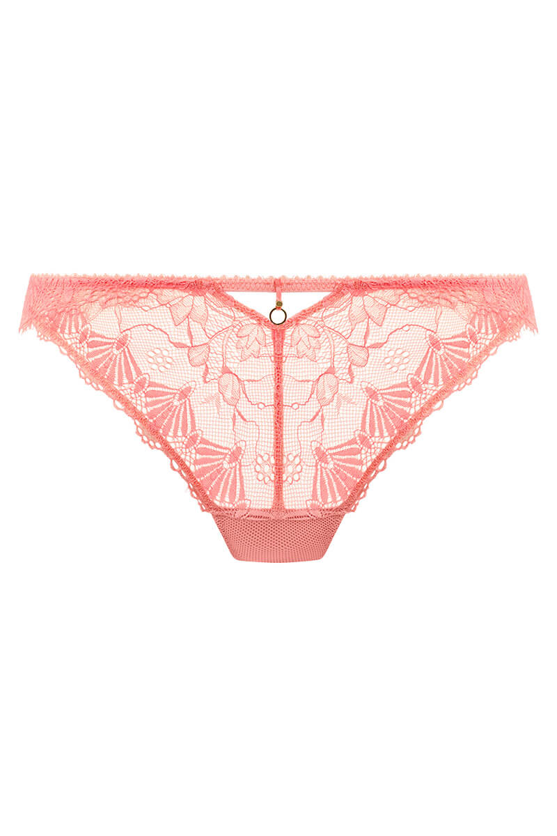 De Freya Fascinate Slip Peach is uitgevoerd in de trendy pastelkleur perzik. Het prachtig ontworpen bloemenkant met decoratieve wimpereinden zorgt voor een perfecte stijl. Extra leuk detail is het gouden ringdetail in een open stukje aan de voorkant. Het kruisje is van katoen.